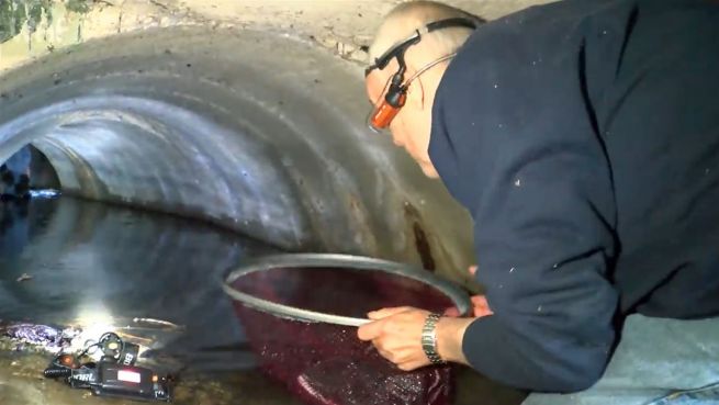 Dramatische Rettungsaktion in der südenglischen Grafschaft Surrey. Mitarbeiter der Tierschutzorganisation Wildlife Aid Foundation sind auf der Suche nach fünf Entenküken, die über eine undichte Stelle in einer Stauanlage in einem unterirdischen Fluss gelandet sind.